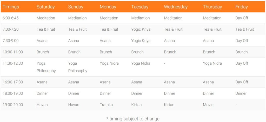 Although, there is no compulsion to be inside the campus at all times, it is recommended to adhere to the daily schedule in order to gain maximum benefit from the Yoga Meditation Retreat.