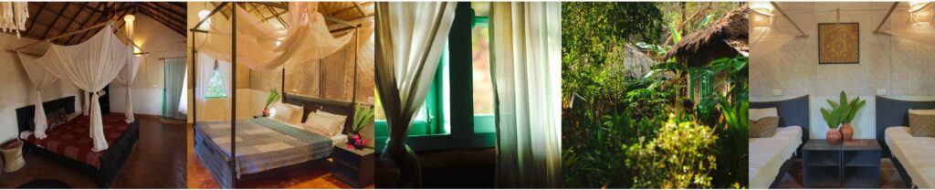 Each cottage features a king-size bed (except one with twin bed), mosquito net, large adjoined private bathroom, two ceiling fans, curtained windows, and a private covered patio with lounge seating, from where you can enjoy a panoramic view of the forest, the best sunrise, and feel the full force of the cooling mountain breeze. All rooms are non-air conditioned.